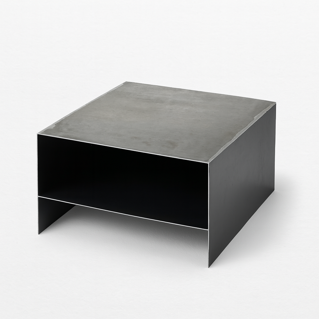 Mesa moderna de diseño minimalista, de color negro con superficie gris.